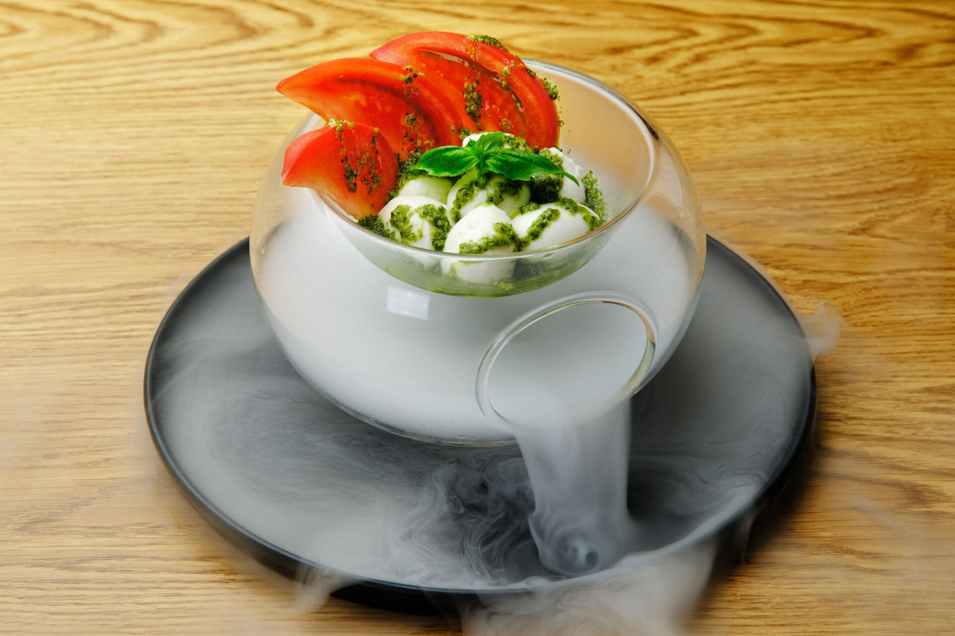 A5ランク和牛をはじめとする厳選食材を贅沢に使用したお料理は、味わいはもちろん、彩りや盛り付けにもこだわった美しい逸品が並びます。目の前で炙るライブ感あふれる演出はSNS映え間違えなし!記念日やデートに最適です。