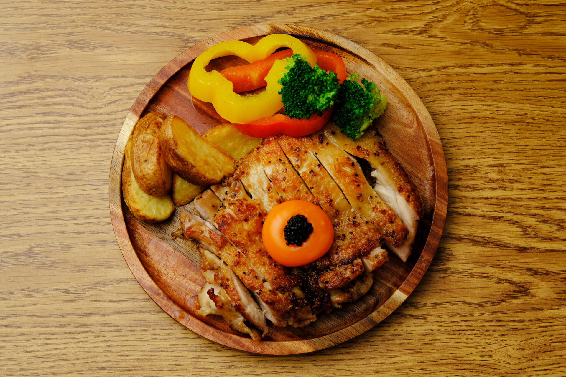 - 比内地鶏ステーキ焼き 金の玉子&キャビア乗せ