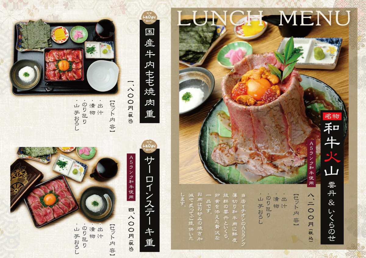 直火で一気に炙り旨味を閉じ込めた和牛と雲丹・いくらを合わせた贅沢な一杯。「A5ランク和牛使用 和牛火山 雲丹&いくらのせ」